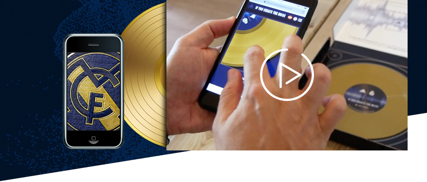 realidad aumentada. A través de esta aplicación, y escaneando la galleta del disco, nuestro teléfono móvil se convertía en un tocadiscos y nuestros dedos podían hacer scratch sobre la pantalla, parar la canción, etc. Esta app contenía imágenes y materiales exclusivos y todos los detalles de la nueva camiseta.