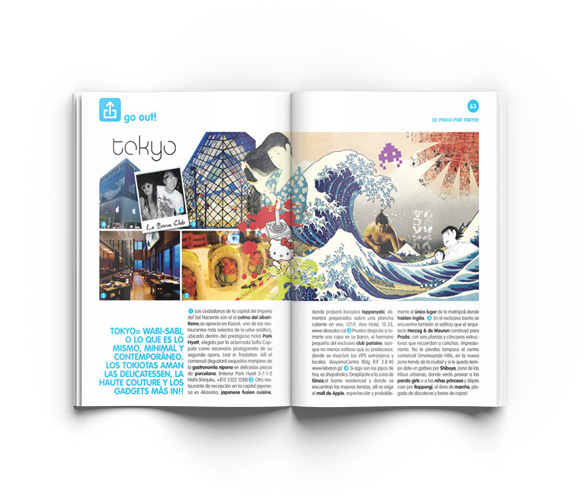 GO! es una publicación de bolsillo de ocio, tendencias y cultura de Madrid de la que fui director de contenidos durante más de dos años. Conciertos y festivales, teatro, exposiciones, compras, ocio y demás acontecimientos que ocurrían en la ciudad. Con una tirada de más de 250.000 ejemplares, GO! estaba presente cada mes en las mejores salas de conciertos, clubes nocturnos, tiendas y zonas de Madrid que formaban la zona de influencia en el target de 20 a 35 años.