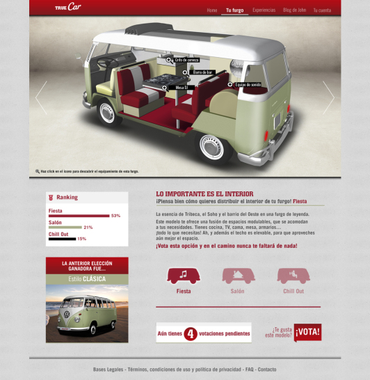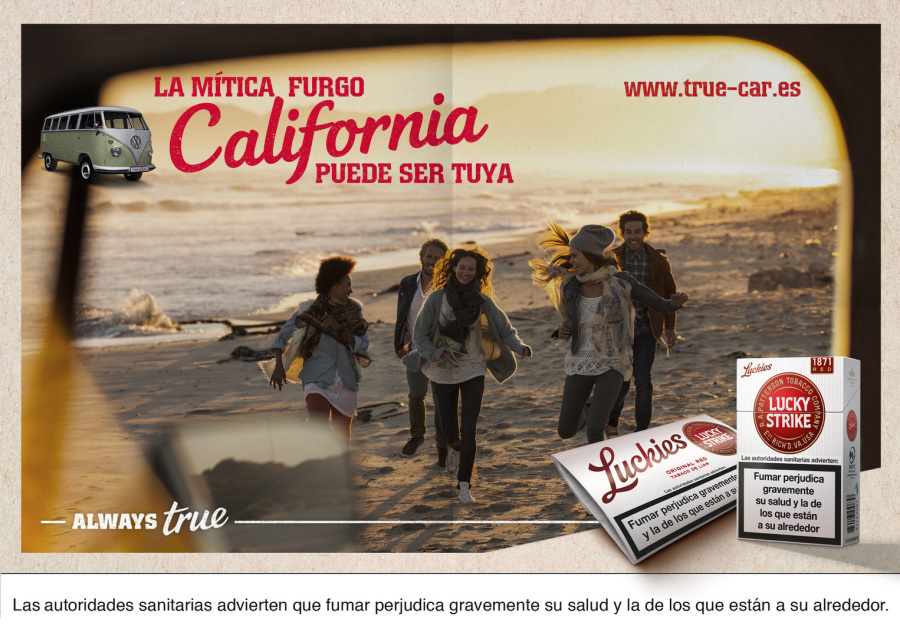True Car, fue la campaña online que Lucky Strike llevó a cabo durante tres años consecutivos. La promoción te ponía en el volante de un coche auténtico, el principal valor de la marca. Primero fue el Ford Mustang, luego la auténtica furgo California y por último un BMW i8, siempre correspondiendo con un lanzamiento de producto. En True Car, el consumidor debía introducir los códigos que encontraba en el interior de la cajetilla en una URL y hacer crecer las probabilidades de ser el dueño de estos coches. Como acelerador, los consumidores podían customizar el vehículo en un área de votación y ponerlo al gusto de la gran mayoría. Una vez terminó la promoción, el ganador se elegía por sorteo: cuantos más códigos redimía el consumidor, más probabilidades tenía de conseguir el gran premio. Además, la promo regalo iphones, auriculares, tablas de skate, etc. como premios directos con cada código en momentos ganadores. La promoción tuvo un gran éxito de acogida y llegó a ser una de las mejores promociones del sector tabaquero.