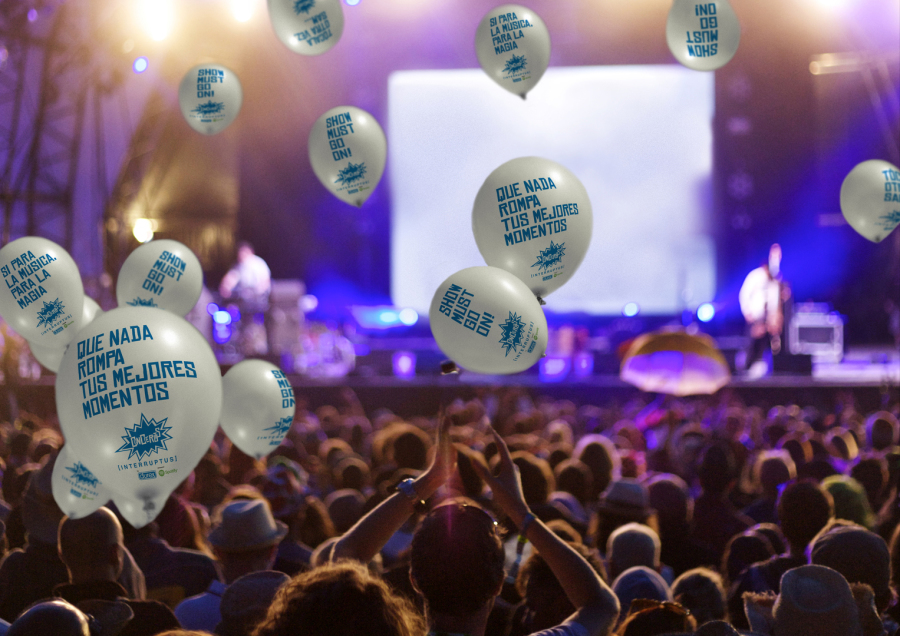 Esto no nos imaginamos que ocurra en un concierto. O sí. Por eso spotify patrocina los "Conciertus Interruptus". Actuaciones de grupos y artistas en festivales en los que a mitad de concierto y justo antes de tocar el temazo, ¡Buuuuuuum! sonaba una cuña de spotify y Durex, el único parnertship que patrocina tus buenos momentos y evitaba una mala sorpresa. Al terminar la cuña, había una explosión de preservativos hinchados con mensajes impresos y algunos, con tarjetas premium de tres meses en su interior.